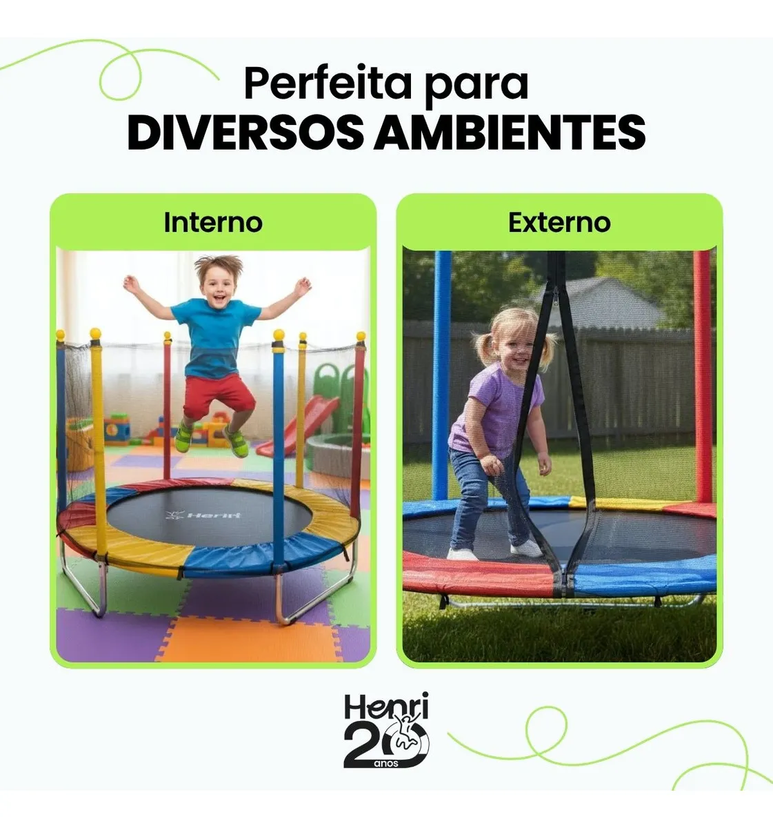 Um Reino de Saltos Só Deles: Com um design colorido e alegre, este trampolim se torna o palco para mil e uma histórias. Hoje pode ser um castelo, amanhã uma nave espacial. Aqui, a imaginação é quem manda!