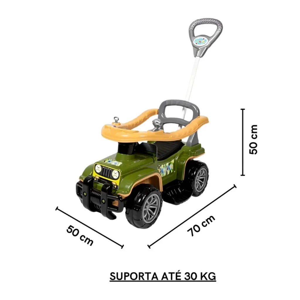 Apertem os cintos, porque a diversão vai começar! O Jip Jip é mais do que um carrinho de passeio; é o passaporte do seu filho para explorar o mundo com estilo e independência. Seja guiado pelos pais em um passeio tranquilo no parque ou pilotando suas próprias aventuras pela casa, este quadriciclo transforma qualquer trajeto em uma viagem cheia de descobertas.
